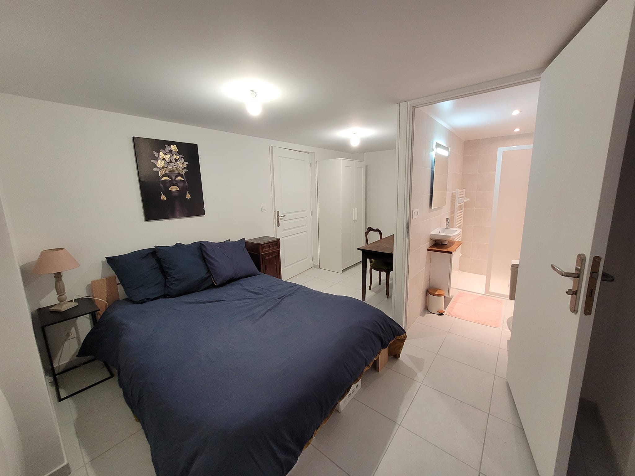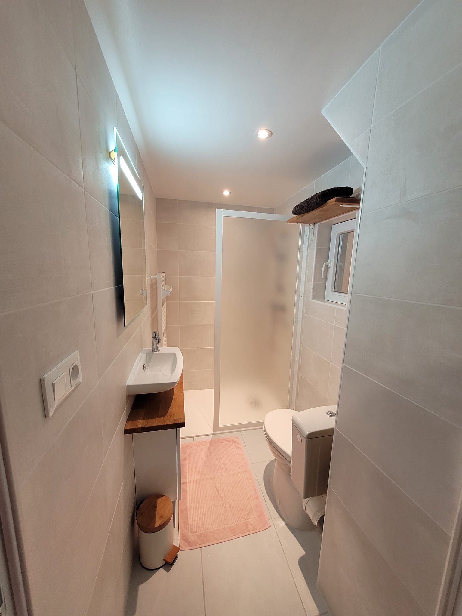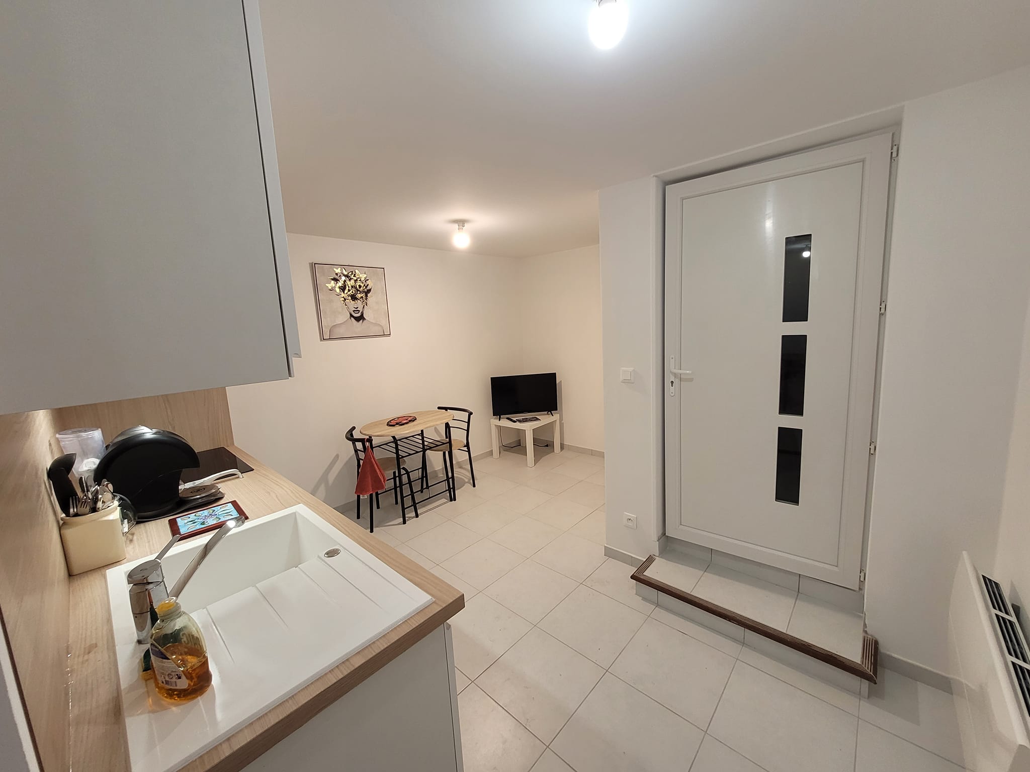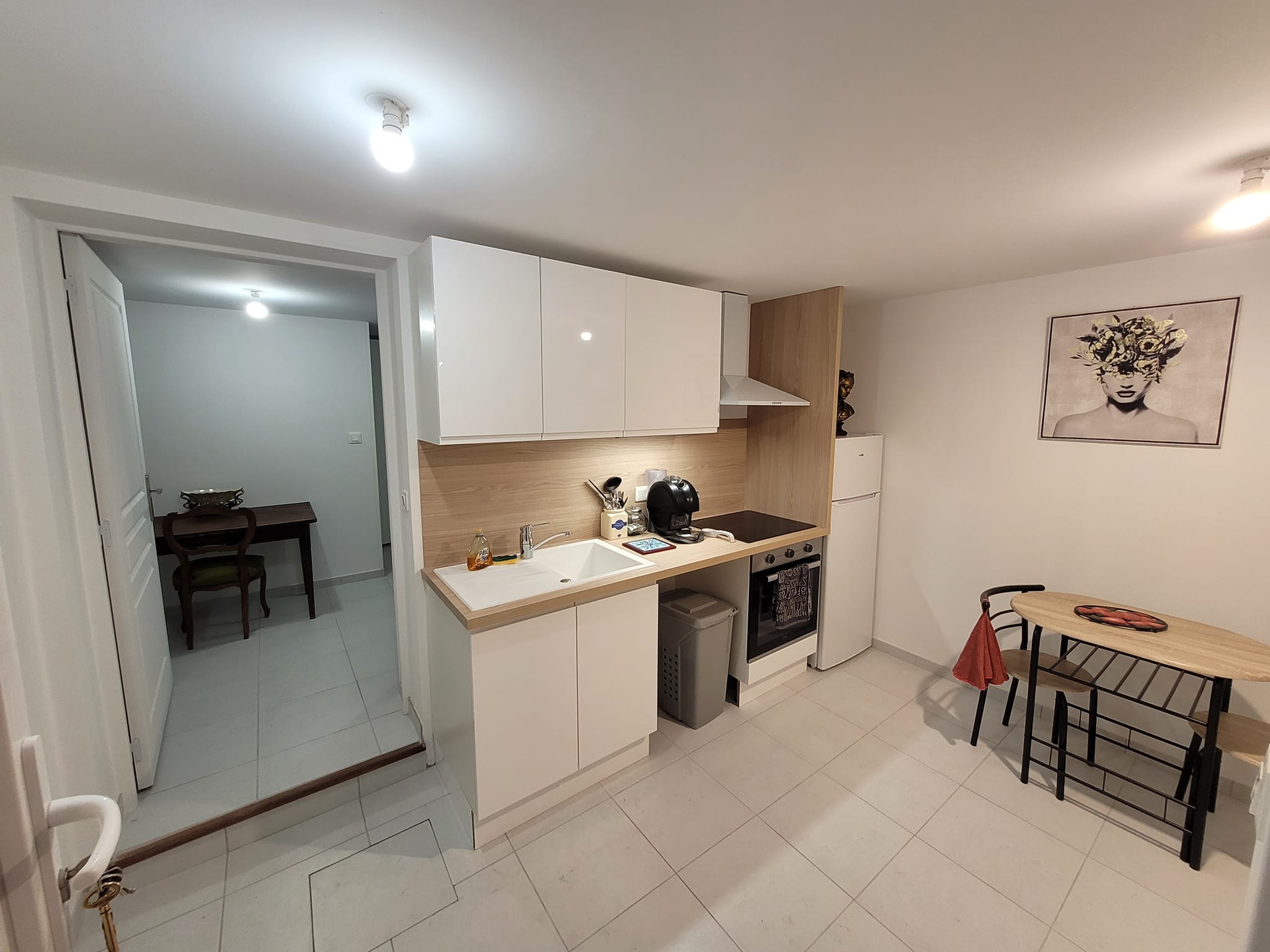 L’appartement est équipé d’une cuisine moderne avec un espace pour dîner et un salon doté d’un canapé-lit (140×190), d’une chambre double avec un coin bureau et télévision, le tout complété par une salle d’eau (douche et WC) ouvrant sur une cour intime. Cette dernière est aménagée avec un salon de jardin et une plancha électrique,…